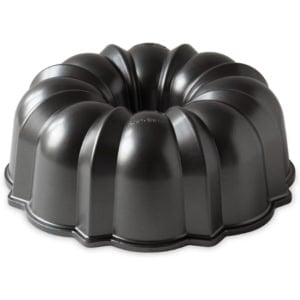 - Prep the oven and baking pan. Heat the oven to 350°F. Mist a bundt pan generously with cooking spray.