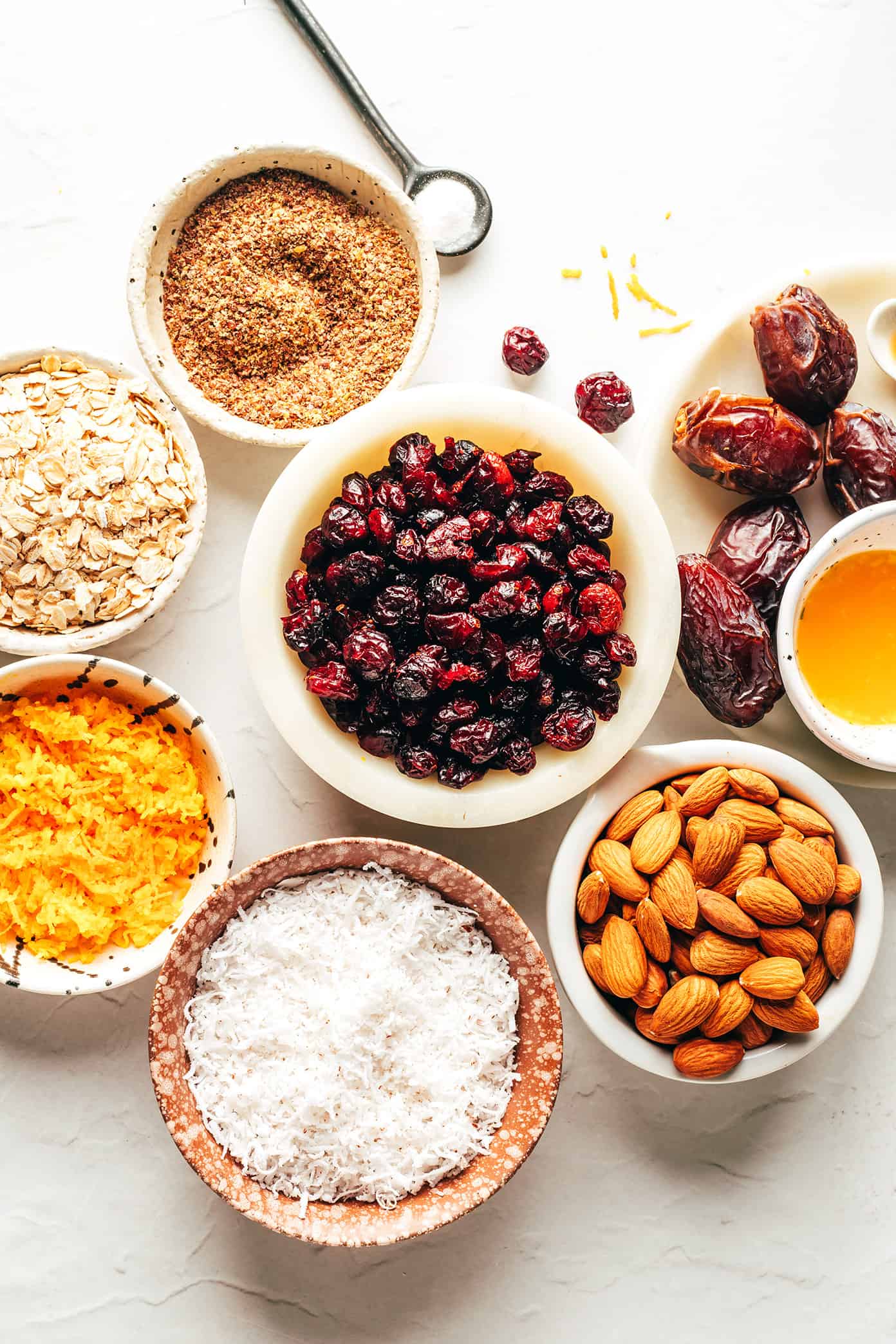 Here are a few brief notes about the ingredients you will need to make this cranberry orange almond energy bites recipe: