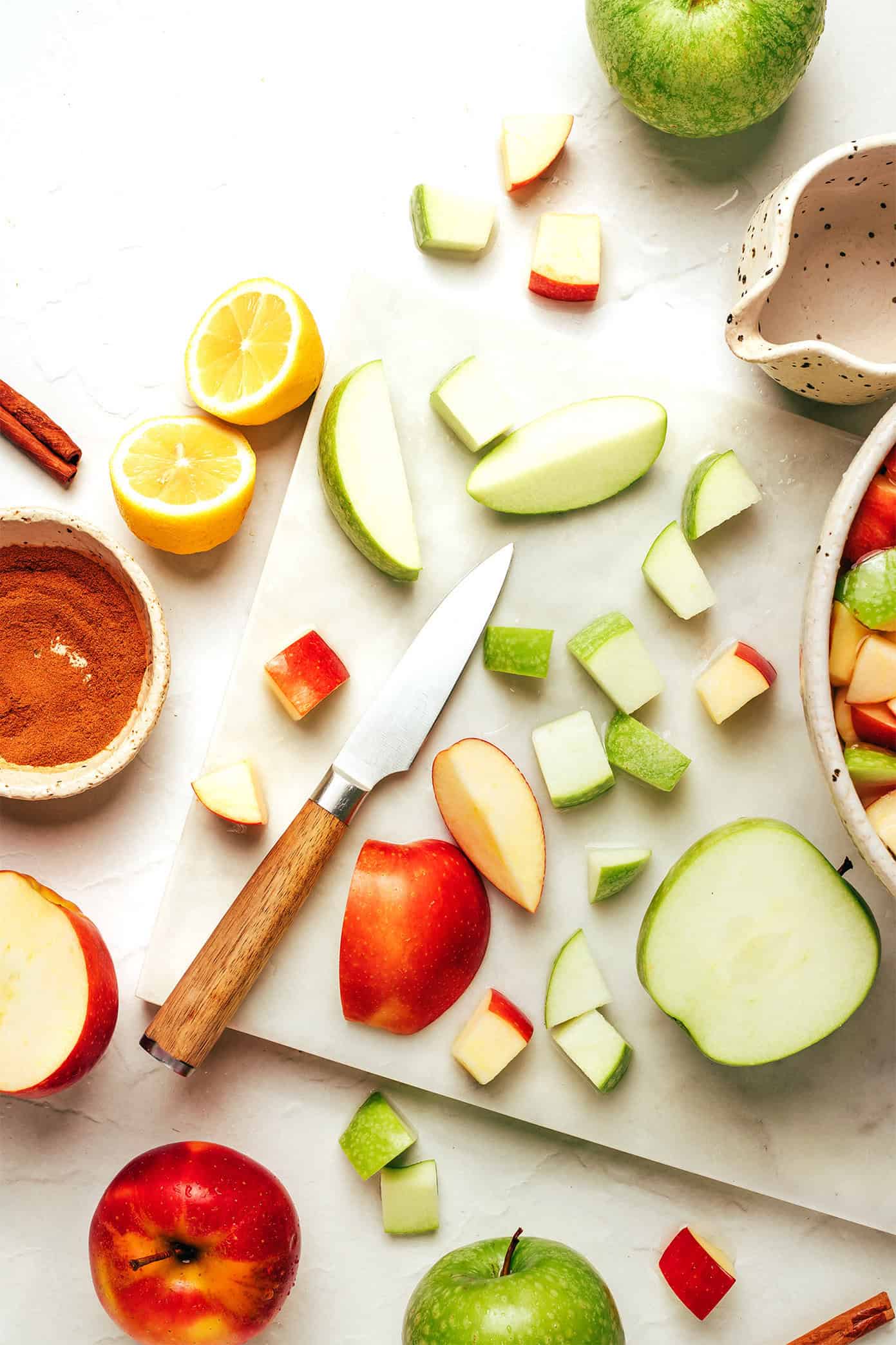- 2 pounds Granny Smith apples, cored and diced (peels optional*)