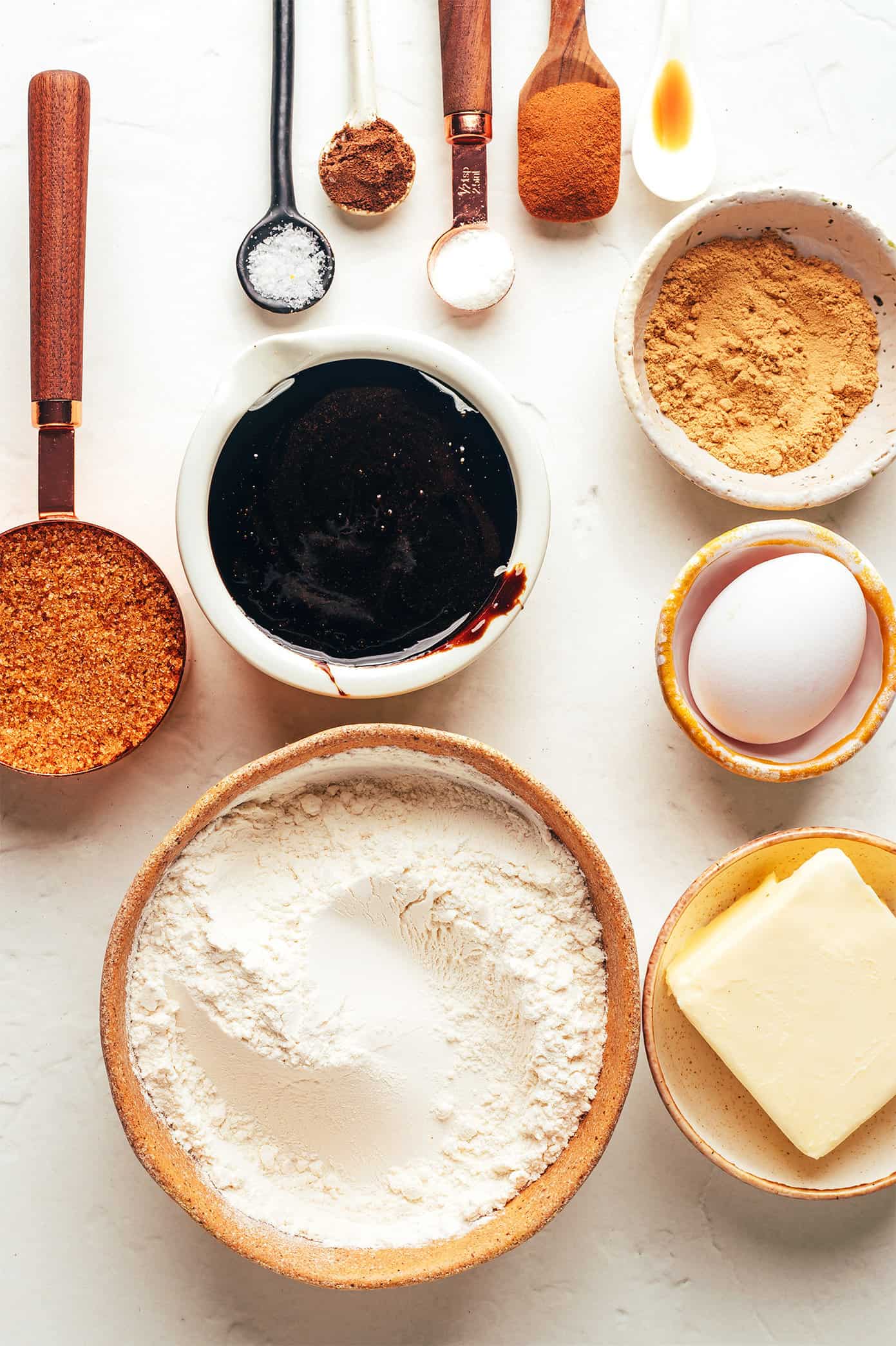 - Spices: I’ve used a classic mix of ground ginger, cinnamon, and cloves to spice this cake. But please feel free to customize this recipe with whatever types and amounts of warming spices you prefer in your gingerbread.