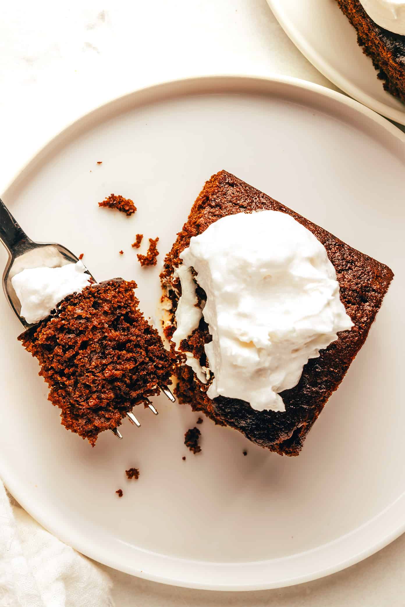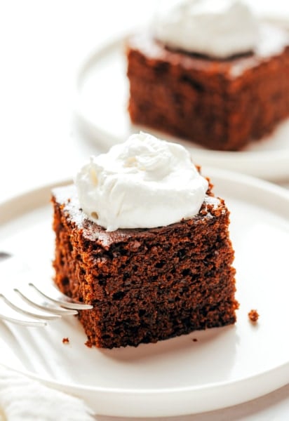 Because if you love gingerbread as much as I do this time of year, I’m telling you, this gingerbread cake needs to be part of your life. It’s made with the classic rich mix of molasses and warming spices that we all love in a good batch of gingerbread. And I’m partial to this particular gingerbread cake recipe because it bakes up to be incredibly moist and fluffy. You can either serve it up solo, dust it with some powdered sugar, or go all out and top it with whipped cream or cream cheese frosting — all will be delicious. And of course, cake for breakfast the next morning is always an excellent idea too.