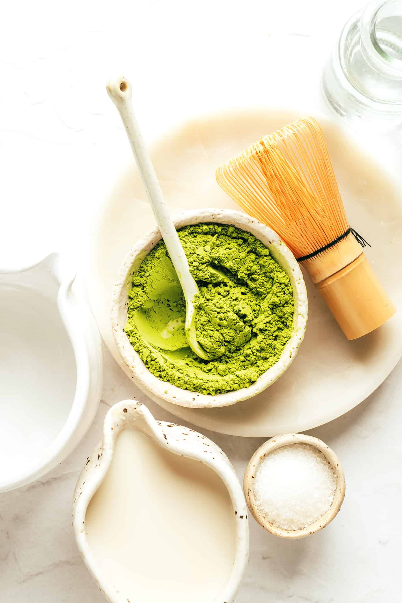 Here are a few brief notes about the 4 matcha latte ingredients that you will need for this recipe:
