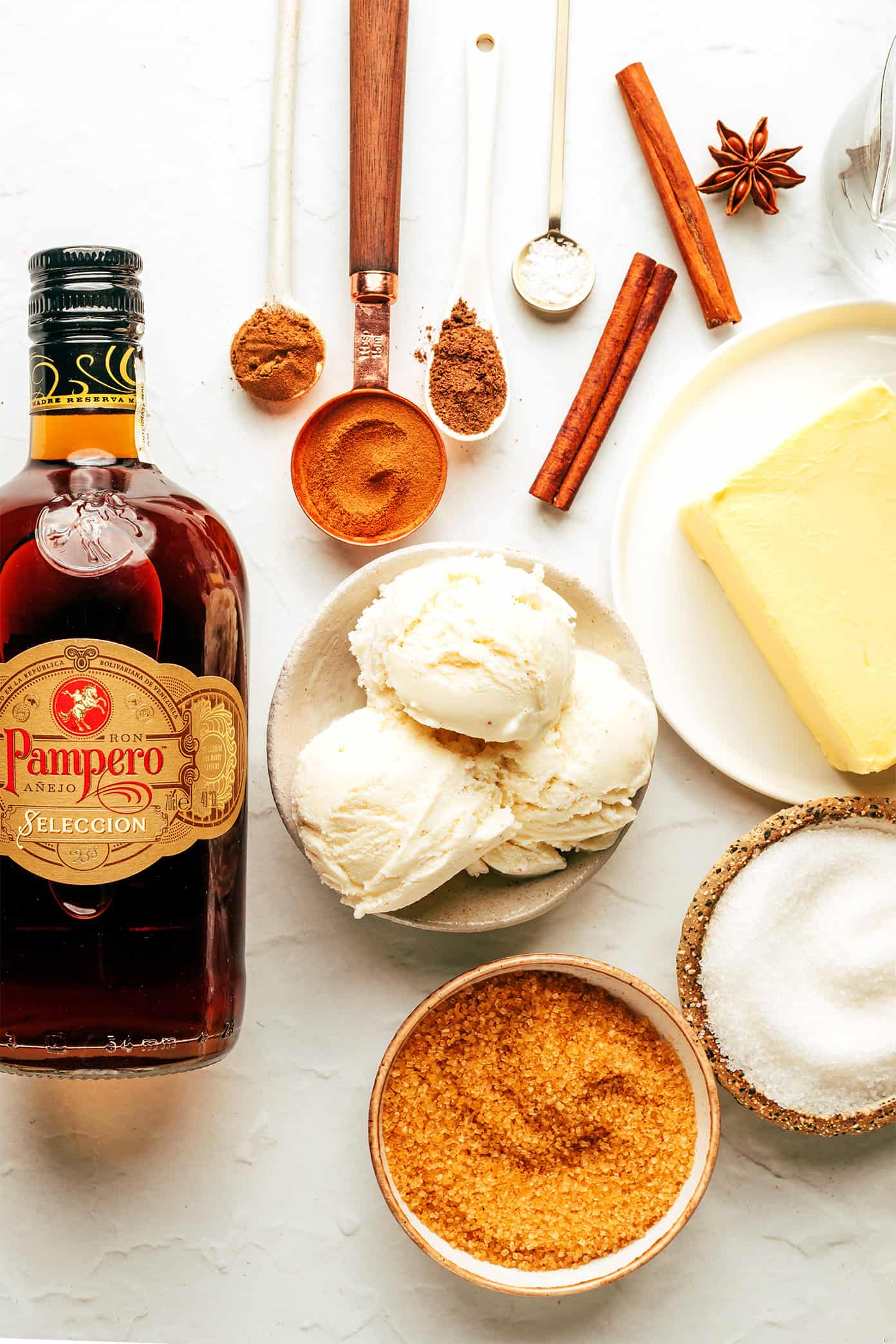 - Dark rum: I really recommend using dark rum in this recipe, which has a more complex and intense caramel flavor than light rum. That said, light rum will also totally work here, or you can use a spiced rum which will add to the spices in the butter batter.