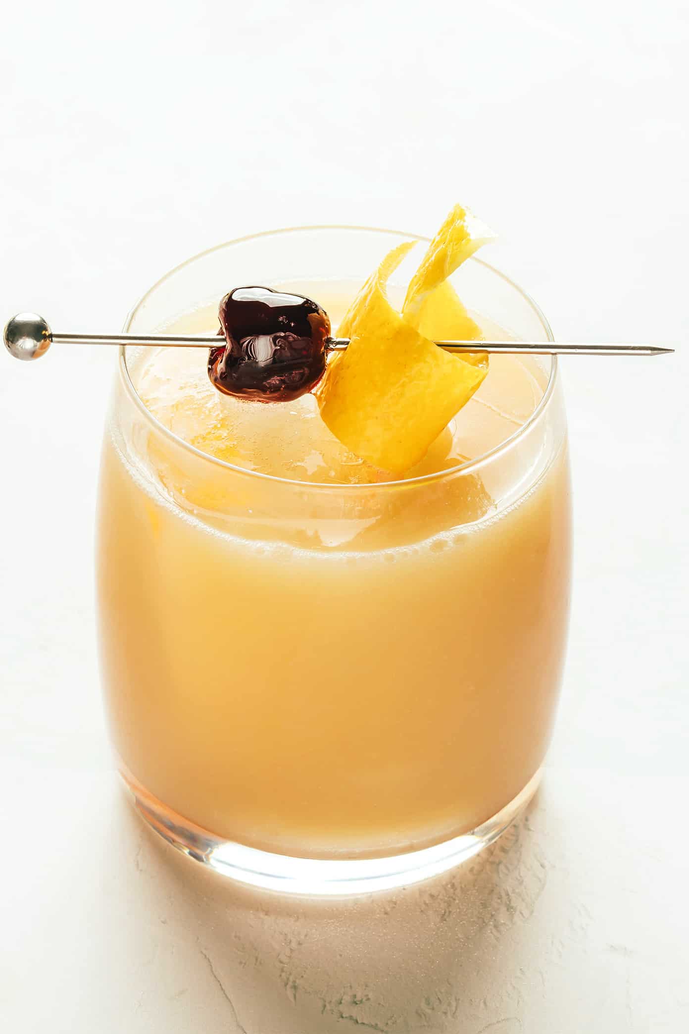 This classic drink is said to date all the way back to the 1870s, and has remained a favorite since then for good reason. It balances the deep, rich notes of whiskey with tartness from freshly-squeezed lemon juice and a hint of sweetener. And then here in our house, we’re partial to the version (also called a Boston Sour) made by shaking the cocktail with an egg white for a velvety, frothy, creamy layer on top. It always looks so elegant garnished with a lemon peel and cocktail cherry and comes together easily in just a few minutes!