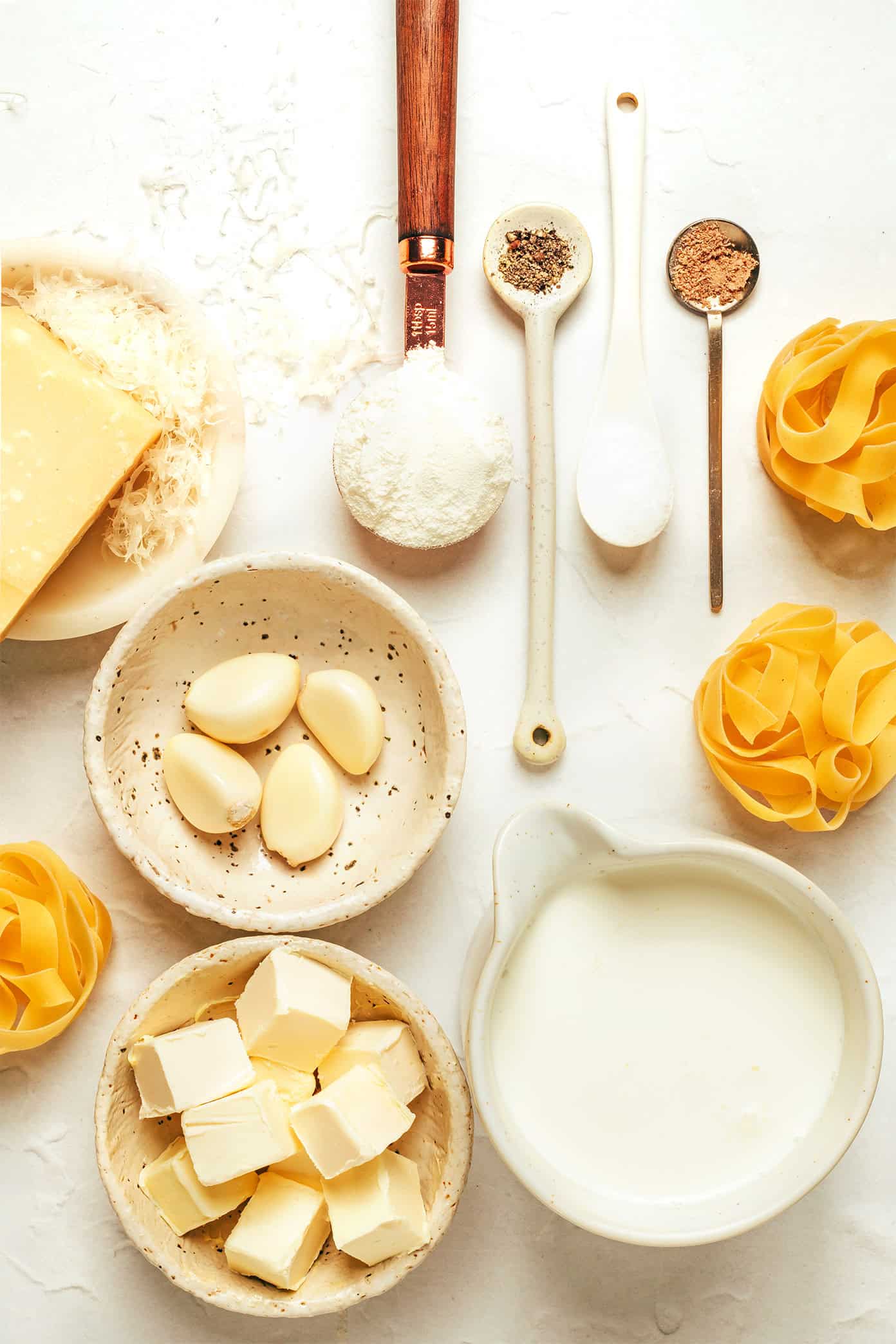 - Ground nutmeg:ย A pinch of nutmeg is typically used in American-style Alfredo, but you can omit this if you prefer.