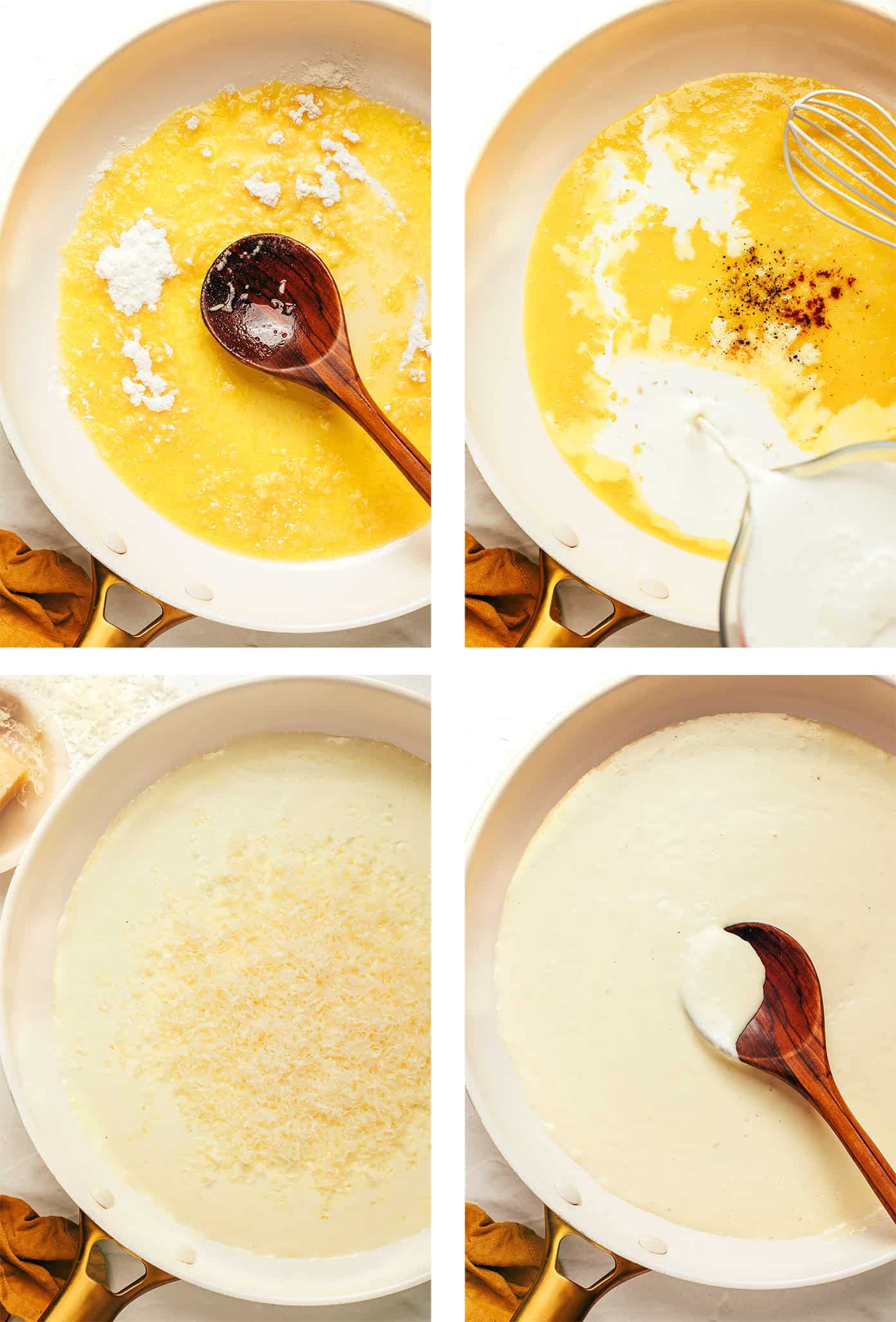 - All-purpose flour:ย To help form a roux and thicken the sauce. If you are making gluten-free Alfredo sauce, however, you are welcome to omit the flour and have a slightly thinner sauce. Or you can use a cornstarch slurry to thicken it (see details below).