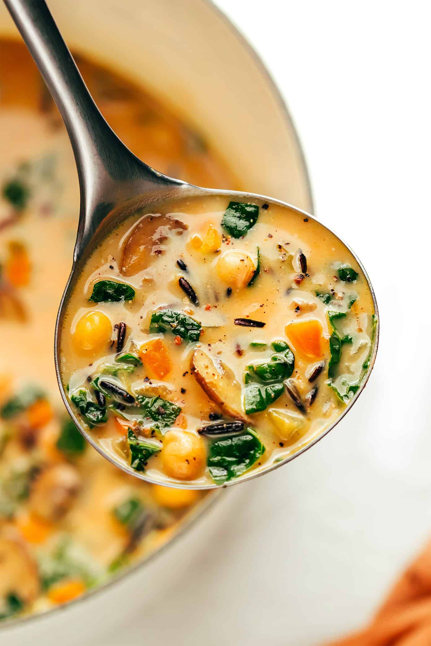I’ve loaded this one up with seasonal veggies, chewy wild rice, protein-packed chickpeas, and vibrant chopped kale — all simmered together in a creamy pumpkin-sage broth — and each bite couldn’t be more cozy and delicious. The mix of savory, slightly-sweet, creamy and earthy flavors works so well here. And it’s one of those soups that’s wonderfully hearty without being too heavy. My favorite!