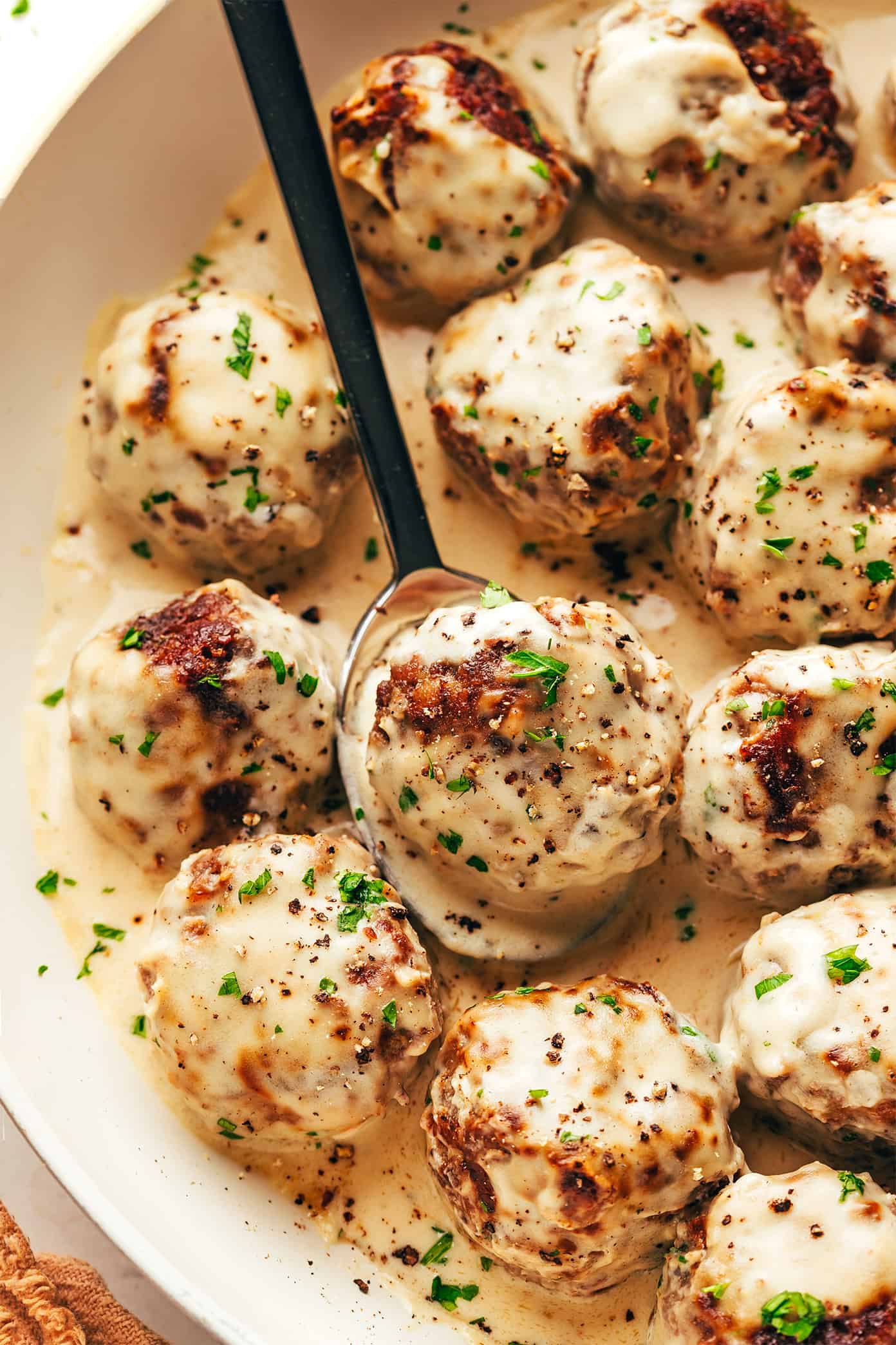This traditional Swedish meatballs recipe is bursting with rich, savory flavors and topped with a creamy gravy. Always so comforting served over mashed potatoes or noodles!
