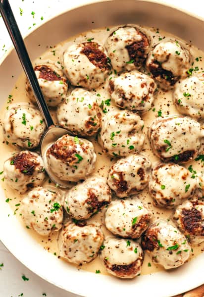 Who’s ready for a big bowl of Swedish meatballs served over buttery mashed potatoes with a generous ladle of creamy gravy on top? โก