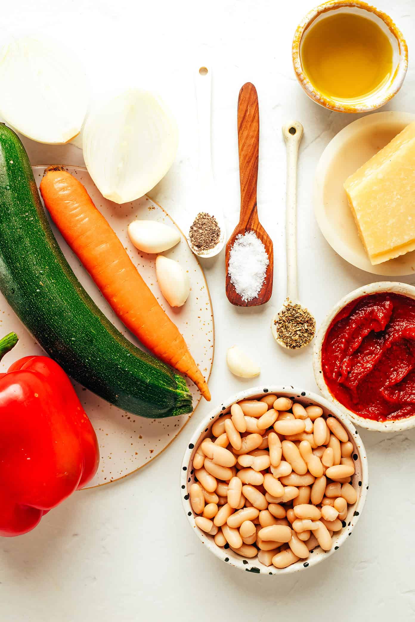 - Veggies (carrot + red bell pepper + zucchini): These colorful fresh vegetables add natural sweetness, subtle earthy flavor, and a boost of nutrients to the sauce. Once cooked and blended, they virtually disappear into the marinara.