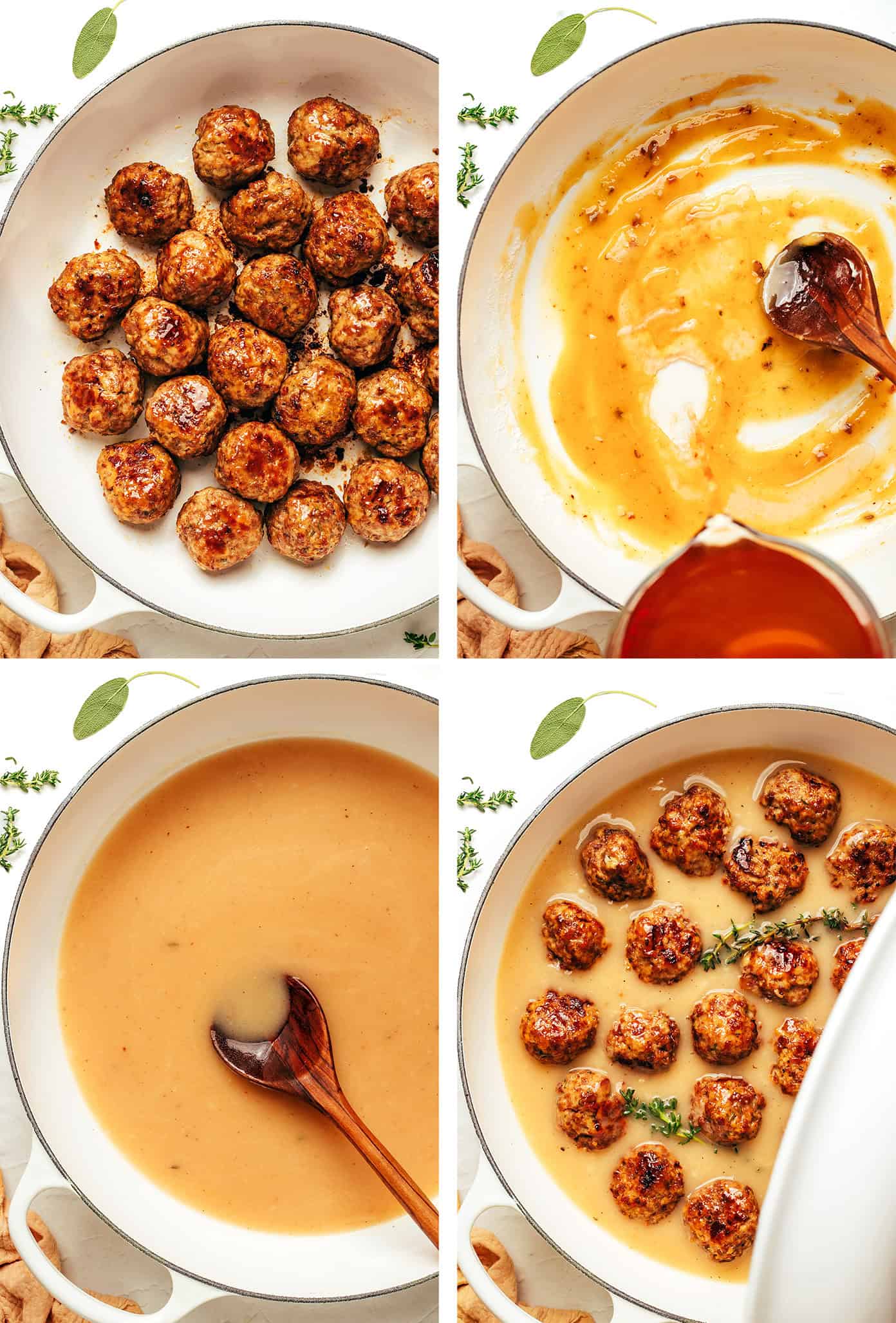 This turkey meatballs and gravy recipe is an easy one-pan dinner perfect for the holidays or cozy weeknights in.