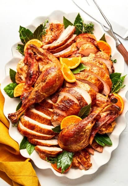 Iโve gathered all of my best tips and tricks below to hopefully take all of the guesswork out of the process. And Iโve also put together a turkey timeline, a step-by-step carving guide, plus instructions for making turkey gravy from the drippings. (Or my favorite mushroom gravy is a fantastic option if you’d like to make the gravy ahead of time!) My hope is that this guide gives you everything you need to walk into your turkey day feeling calm, prepared, and genuinely excited about the feast ahead.