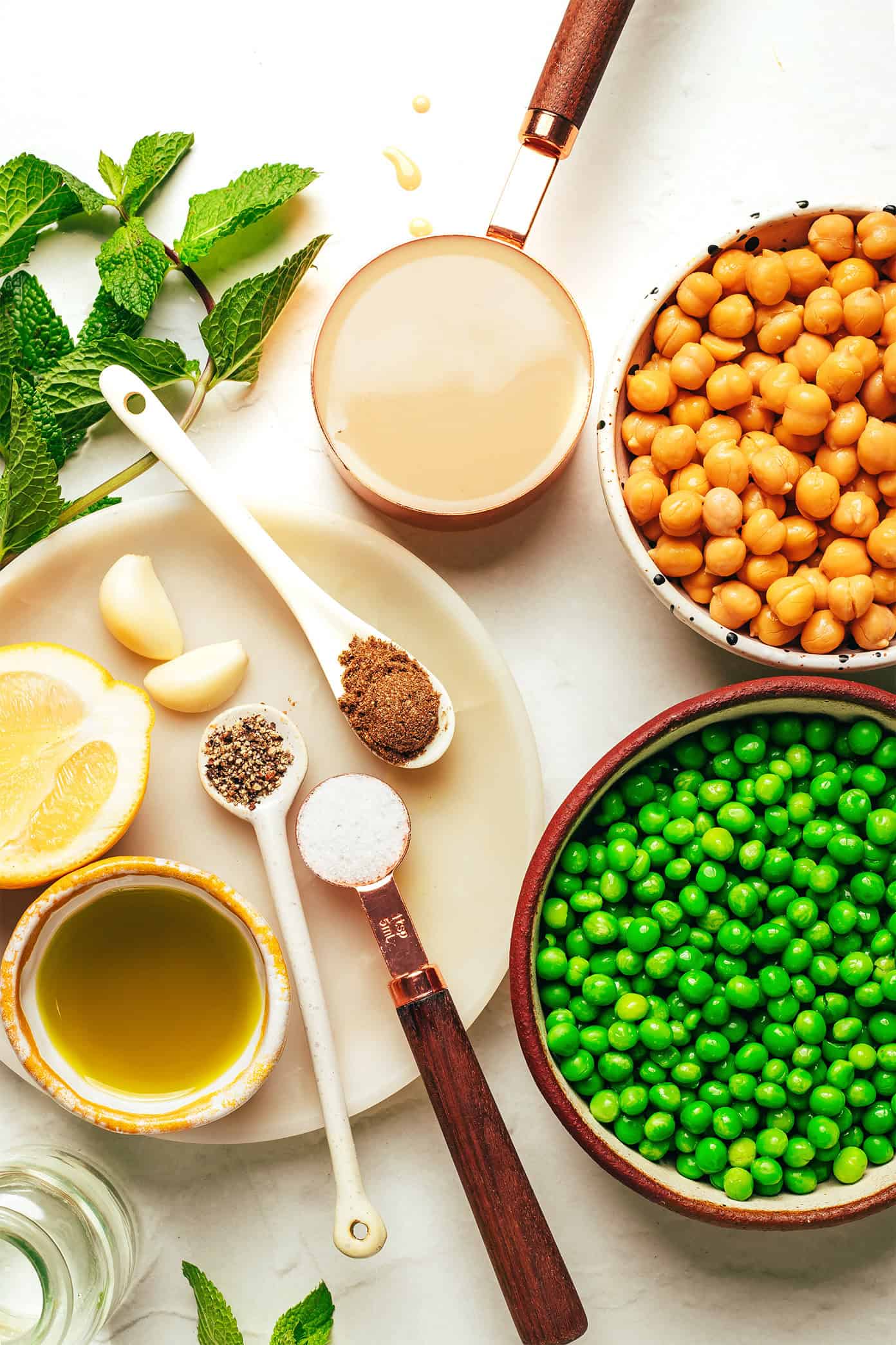 - Tahini: I recommend using a good-quality tahini when making homemade hummus. (I’m partial to Soom, but use whatever tahini you love best.) Its rich and nutty flavor compliments the sweetness from the peas and mint beautifully.