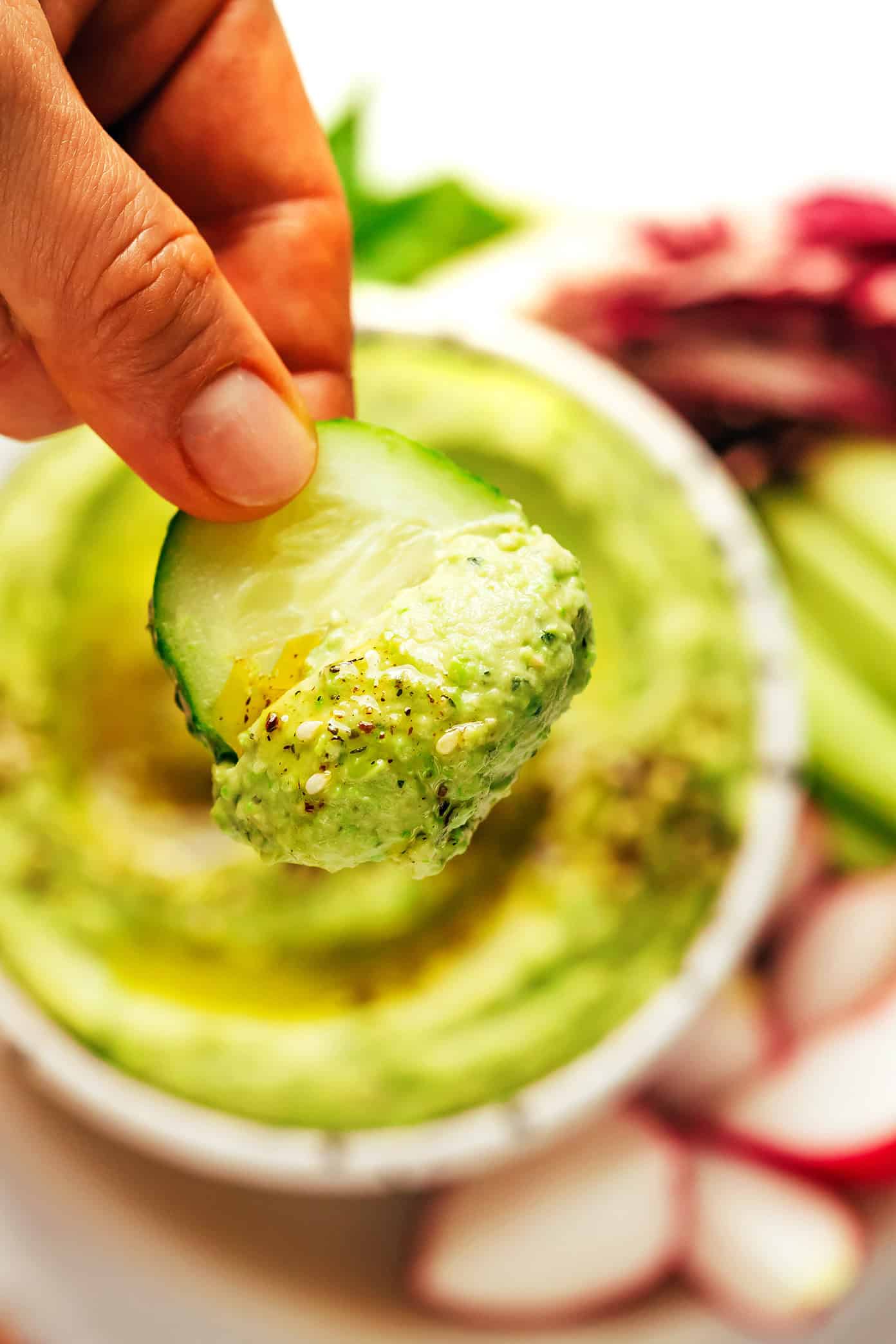 This lovely green hummus used to be a weekly (at least!) purchase for us back when we were living there. The mint and peas add a refreshing hint of sweetness and fresh aromatic flavor to the hummus. And when perfectly balanced with the rich sesame flavor of tahini, hearty chickpeas, a tangy squeeze of lemon juice, garlic and cumin, this hummus is just so delightful. We most often just served ours with pita or crackers and veggie sticks for dipping, but it also tastes wonderful in sandwiches, grain bowls, burgers, wraps, you name it. As a bonus, it was also a great way to get extra veggies into our toddler too!