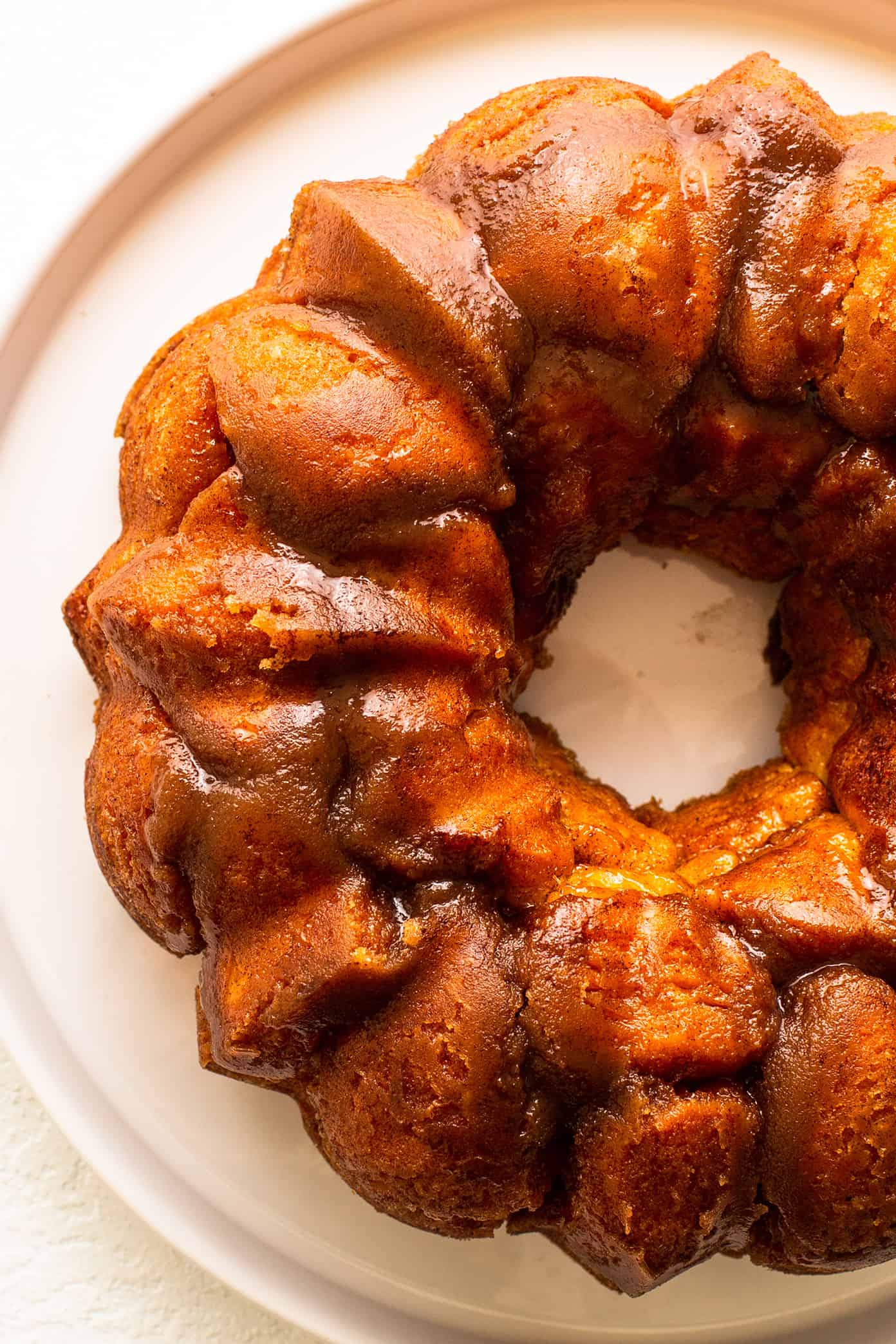 - Use a bundt pan. There’s a reason that monkey bread is traditionally made in bundt or tube pans. The design of the pan allows the biscuits to cook evenly (avoiding an undercooked center) and ensures extra gooey, caramelized eges.