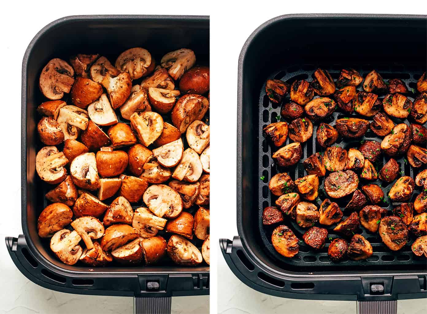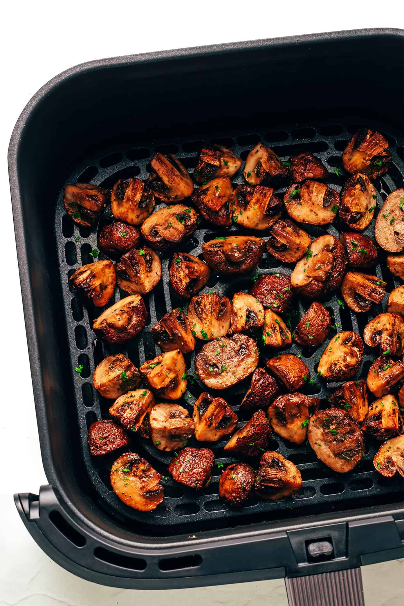- Donโt crowd the basket: Arrange mushrooms more or less in a single layer for the best crisping. If you double the batch, cook in two rounds.