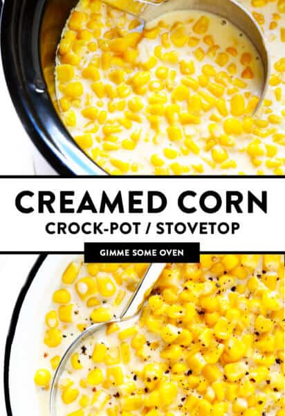 This classic slow cooker creamed corn recipe tastes deliciously rich and creamy, and it’s super-easy to make in the Crock-Pot (or on the stovetop).ย See notes above for possible ingredient add-ins.