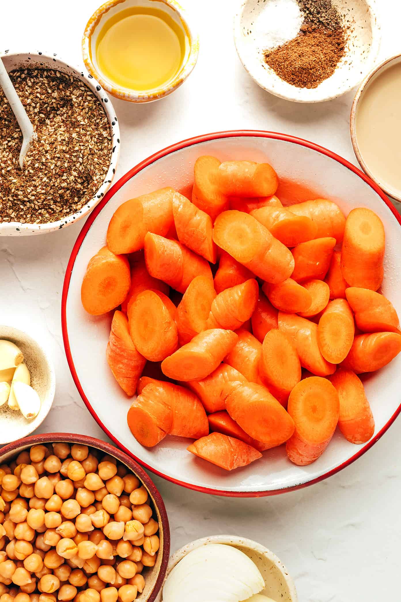 • Za’atar roasted chickpeas:ย We will also roast up a batch of crispy za’atar chickpeas alongside the carrots, which add protein and earthy flavor to the soup and are simple to make with olive oil, za’atar and fine sea salt.