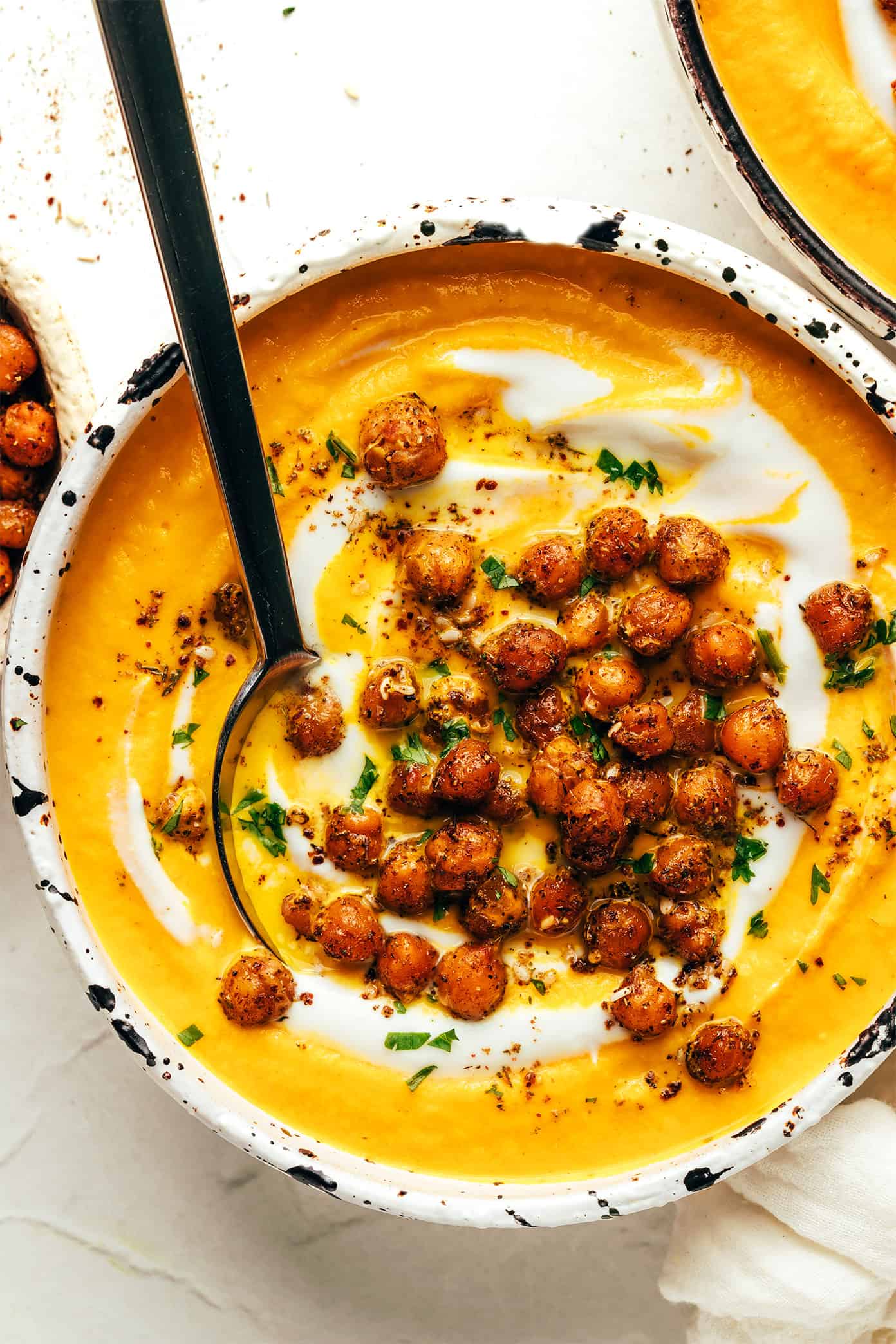 Roasted Carrot Soup with Za’atar Chickpeasย Recipe | 1-Minute Video